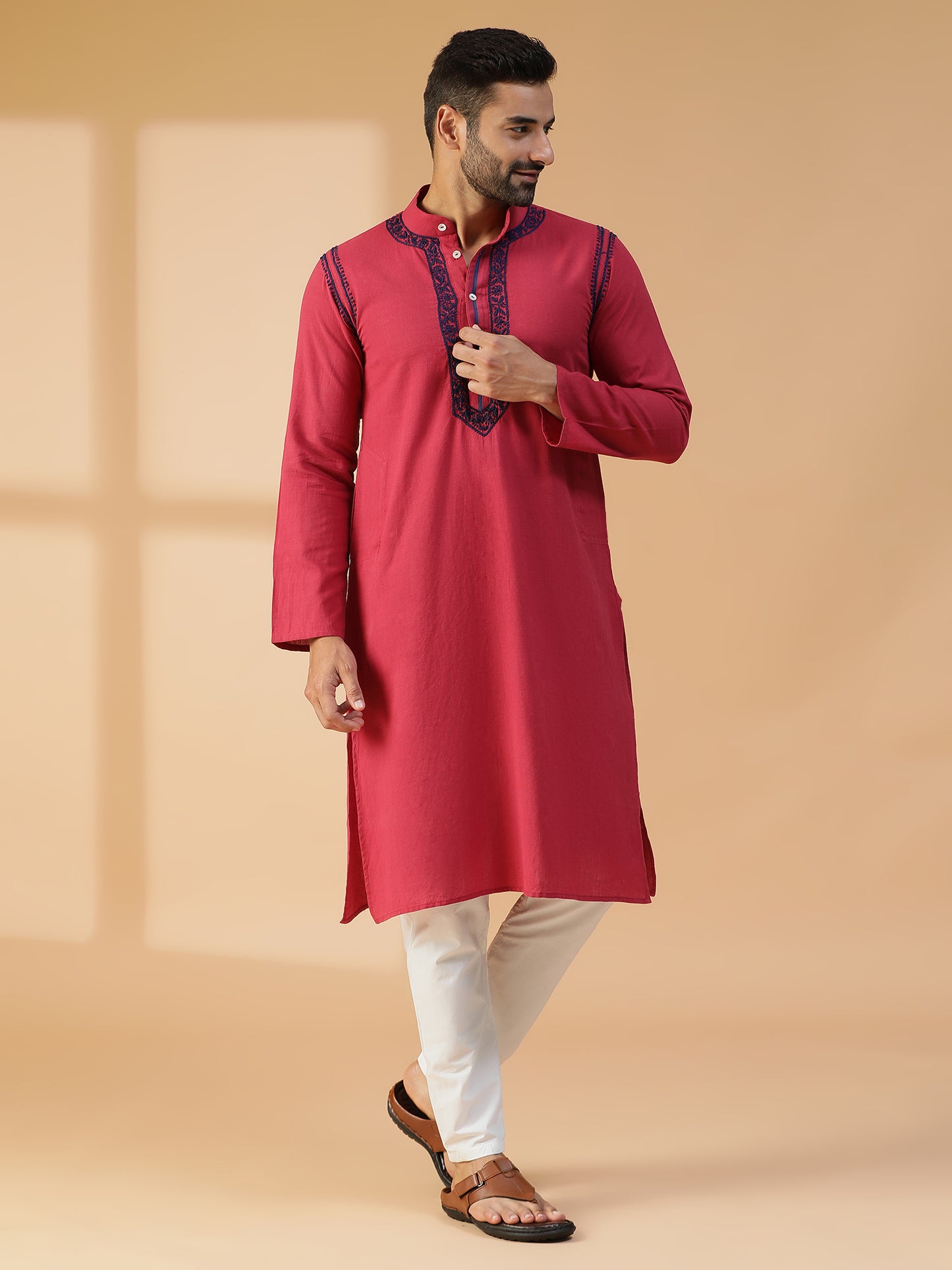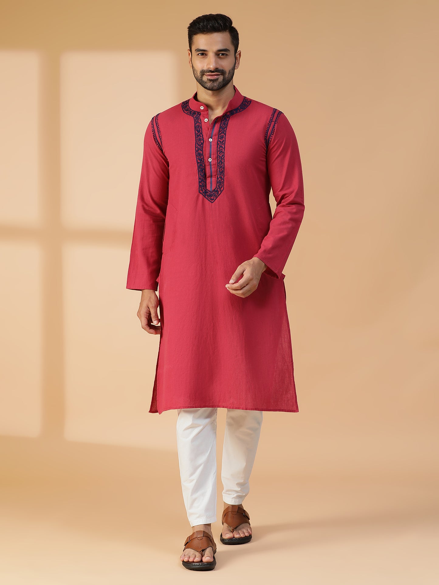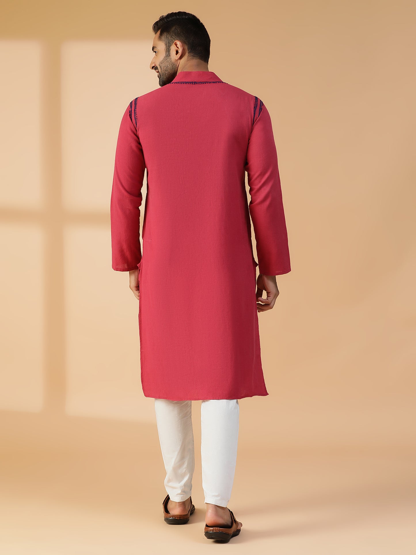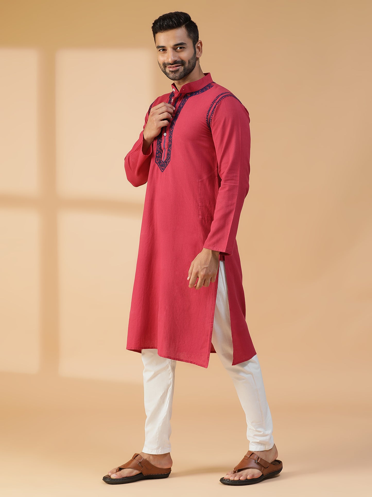 Hand Embroidered Maroon Lucknowi Chikankari Cotton A-Line Men's Kurta CH0300