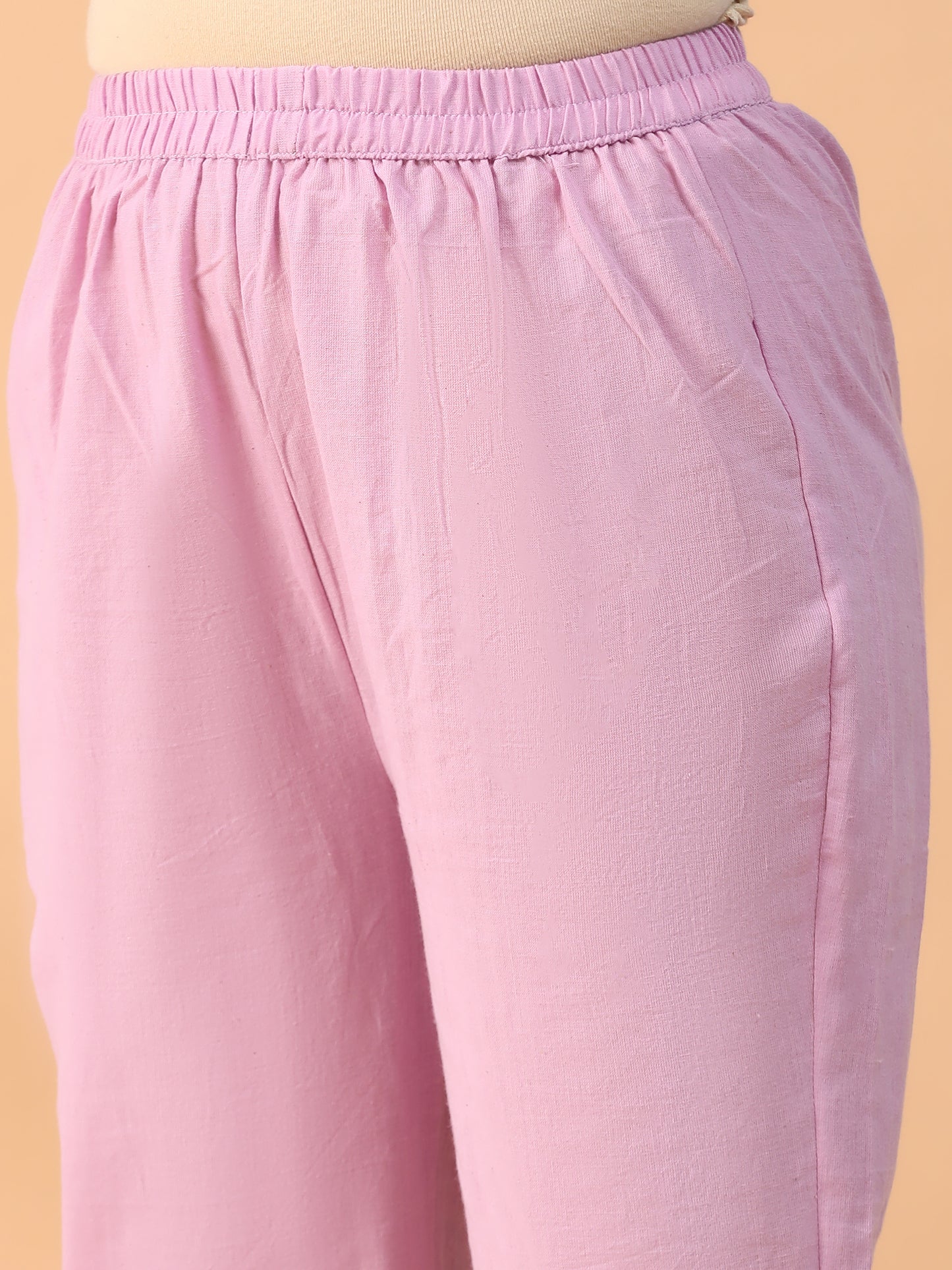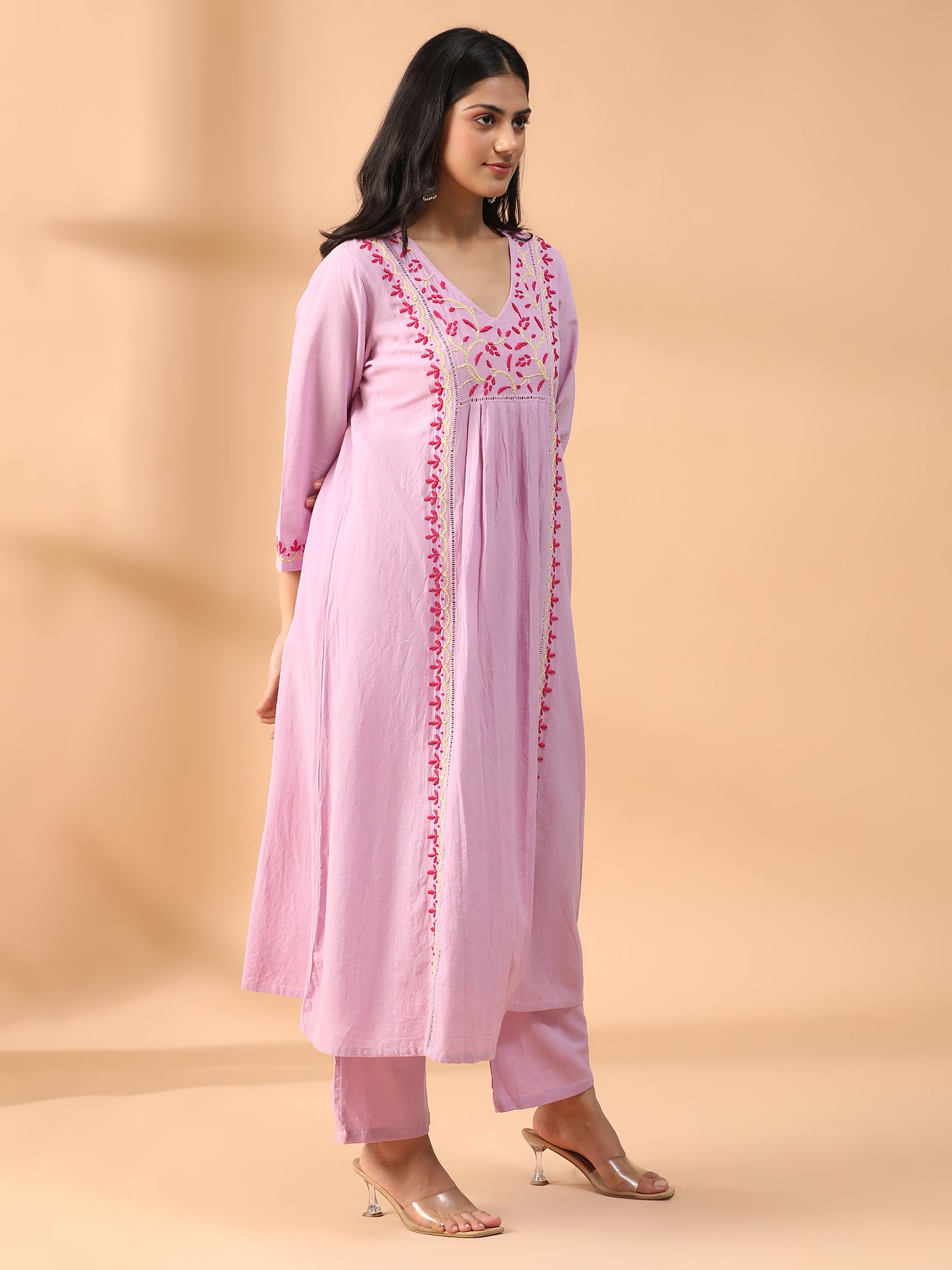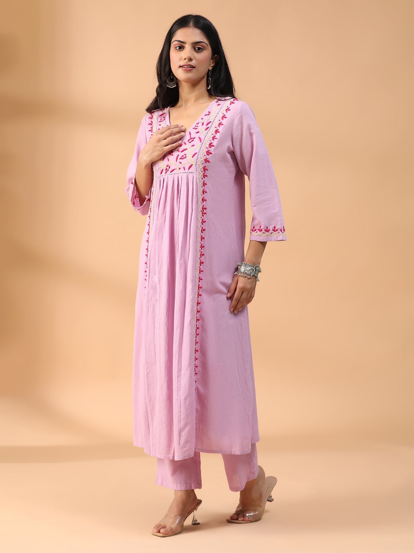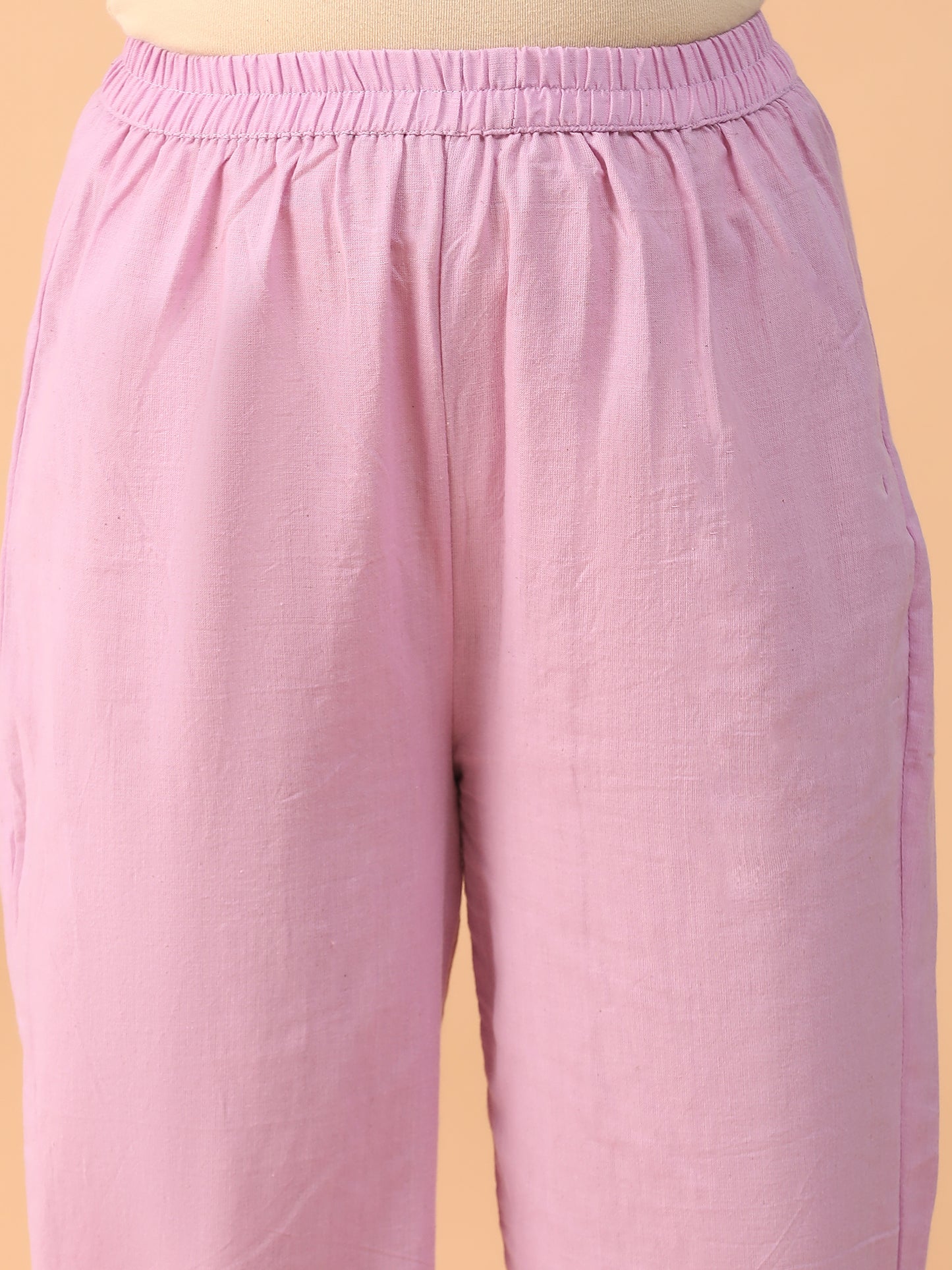 Hand Embroidered Pink Lucknowi Chikankari Khadi Cotton A-Line Kurta With Pants Set CH0289