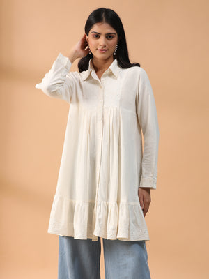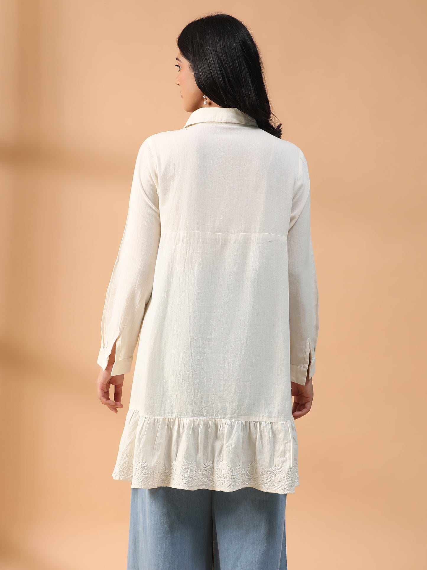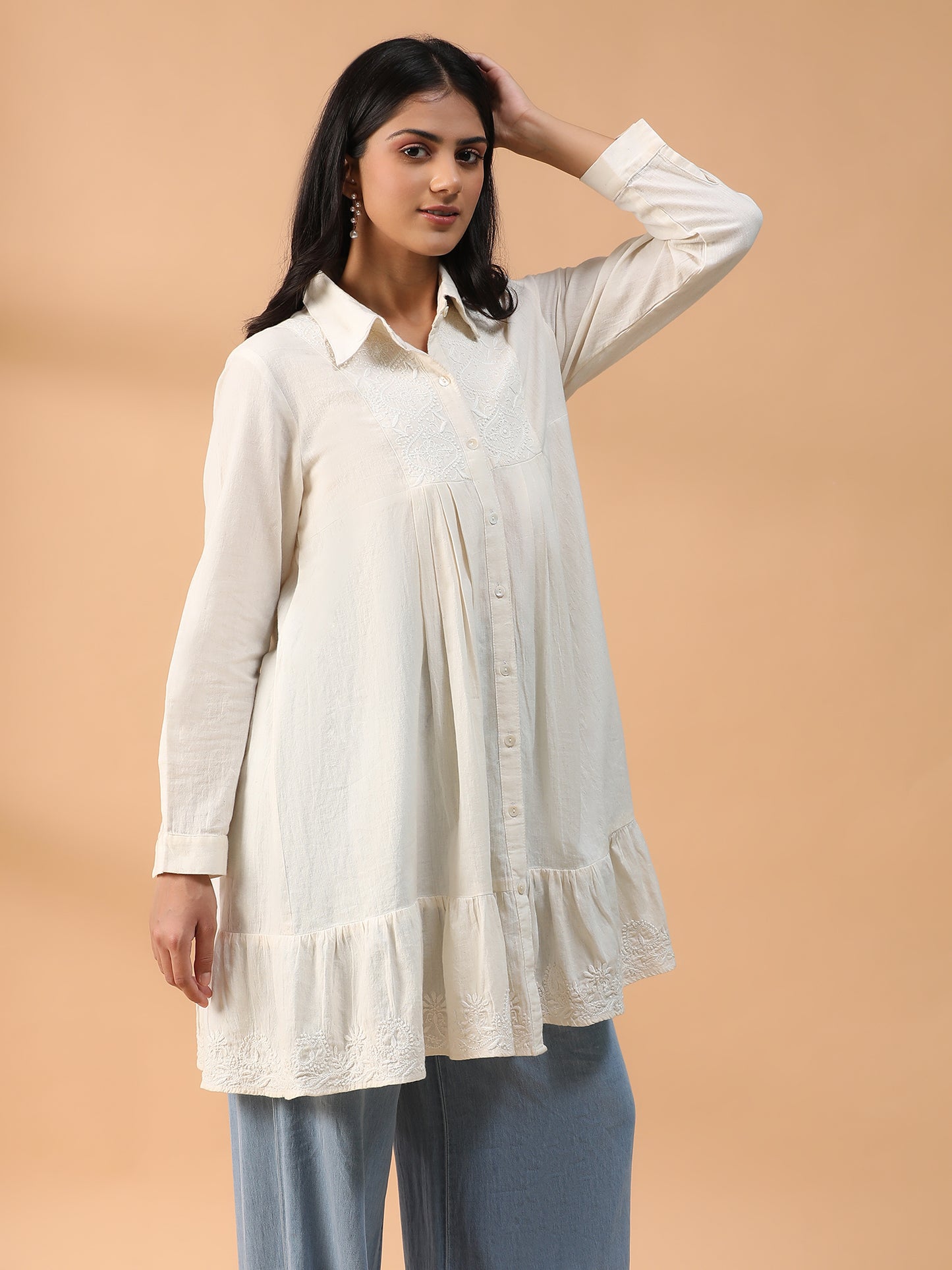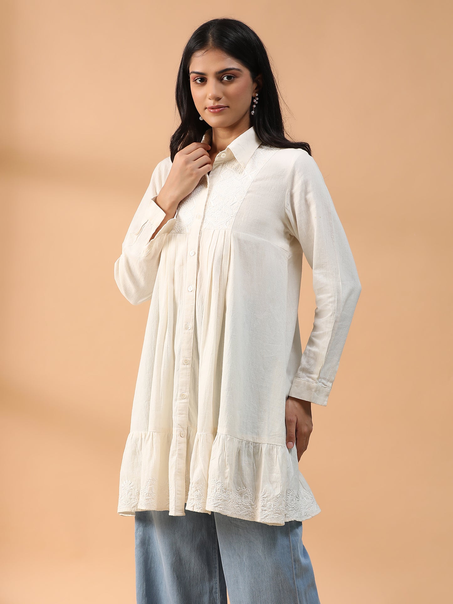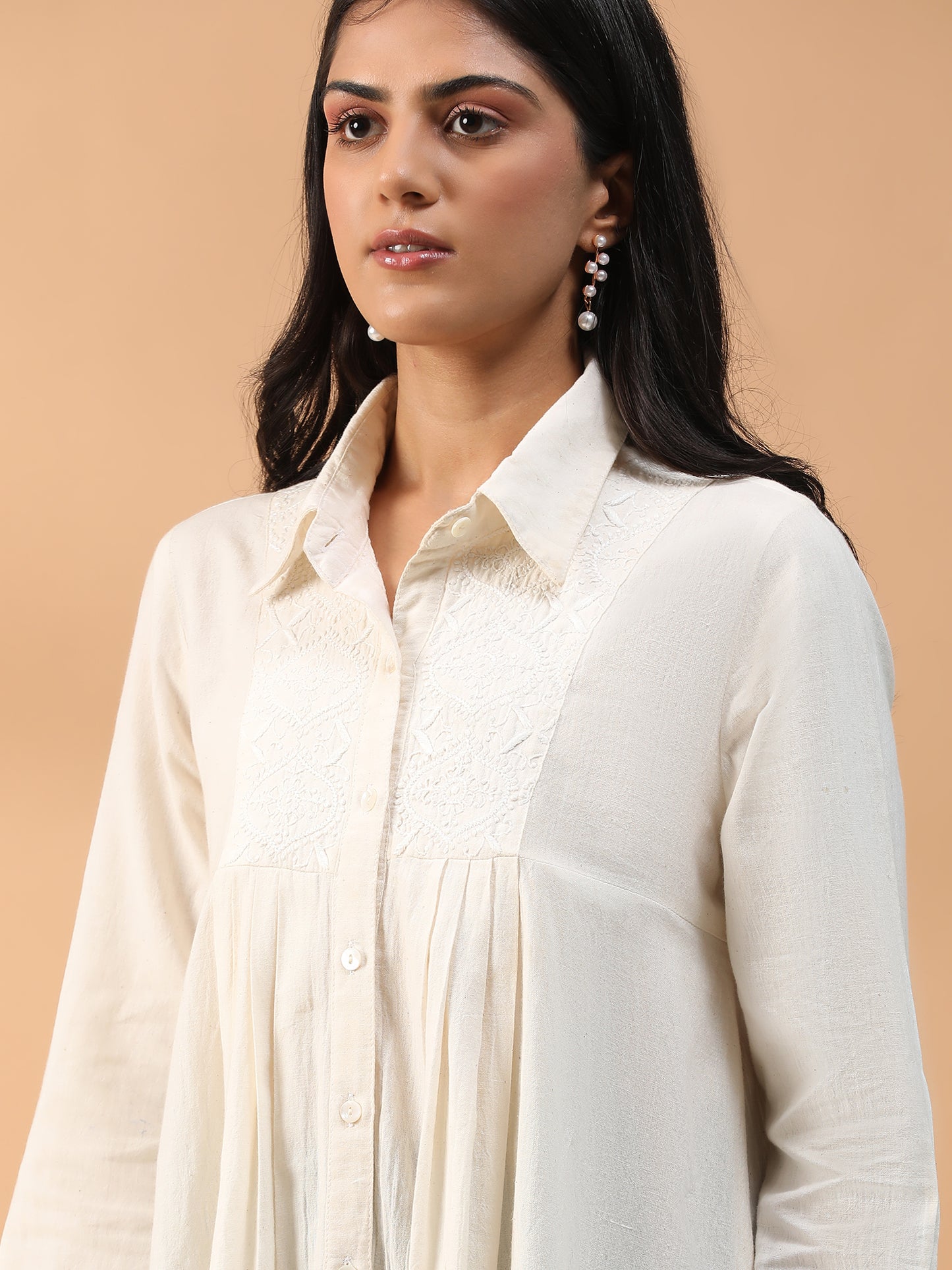 Hand Embroidered Natural White Lucknowi Chikankari Khadi Cotton Collar Top CH0299