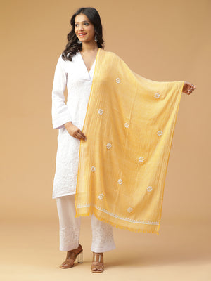 Hand Embroidered Pure Handloom Cotton Saffron Stole STL002
